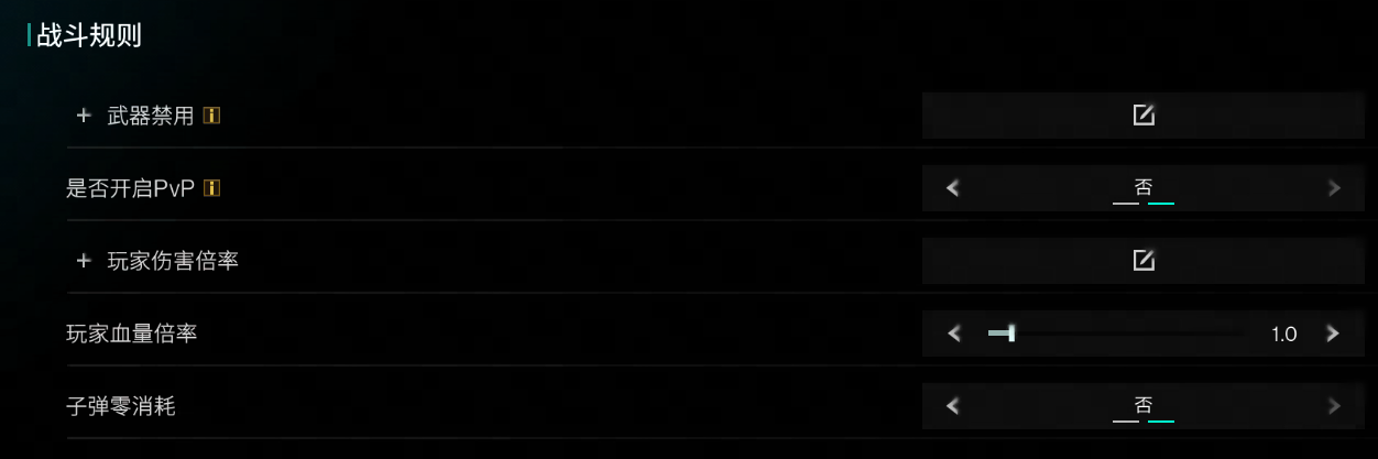 可全面自定义战斗对抗体验,通过开关 PvP、调整伤害 / 血量、管理弹药消耗,自由定义服务器 “和平建造”“战术竞技” 或 “畅快割草” 风格,塑造契合预期的核心玩法规则。