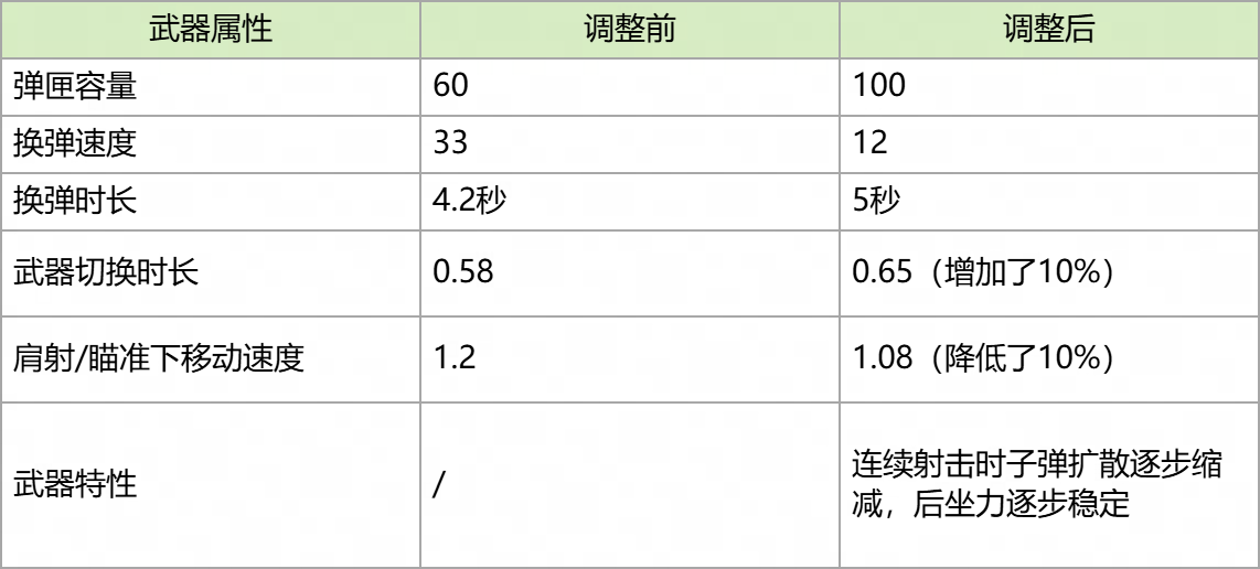 轻机枪在战斗体验上与步枪没有拉开较大的差距且扩散也相对较大,并不适配其高额的造价。我们期望将轻机枪设定为拥有中远距离持续压制能力的武器,配合其较高的弹速和较高的弹匣容量,并随着武器射击弹道和后坐力更加稳定可控。