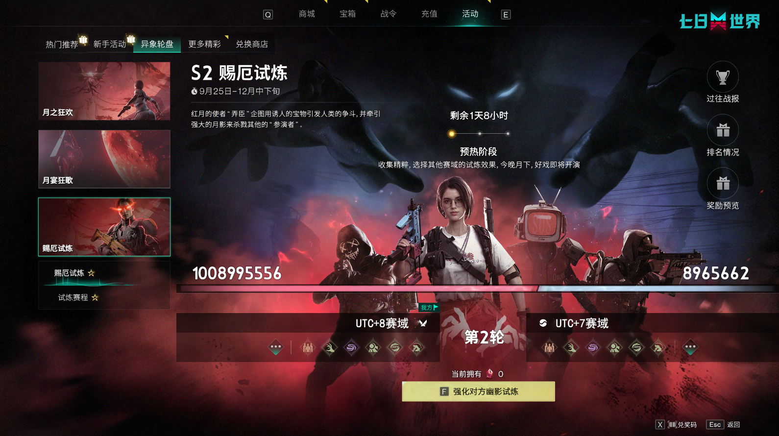 *月影之主的强度较高,为方便超越者们互助参与,赛域将按照时区(大区)进行划分。您可以在活动界面查看自己所属的赛域。
